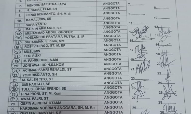 Berikut nama nama anggota DPRD yang tercatat mengisi absensi hadir dan tidak mengisi absensi (tidak hadir) saat rapat tadi malam.